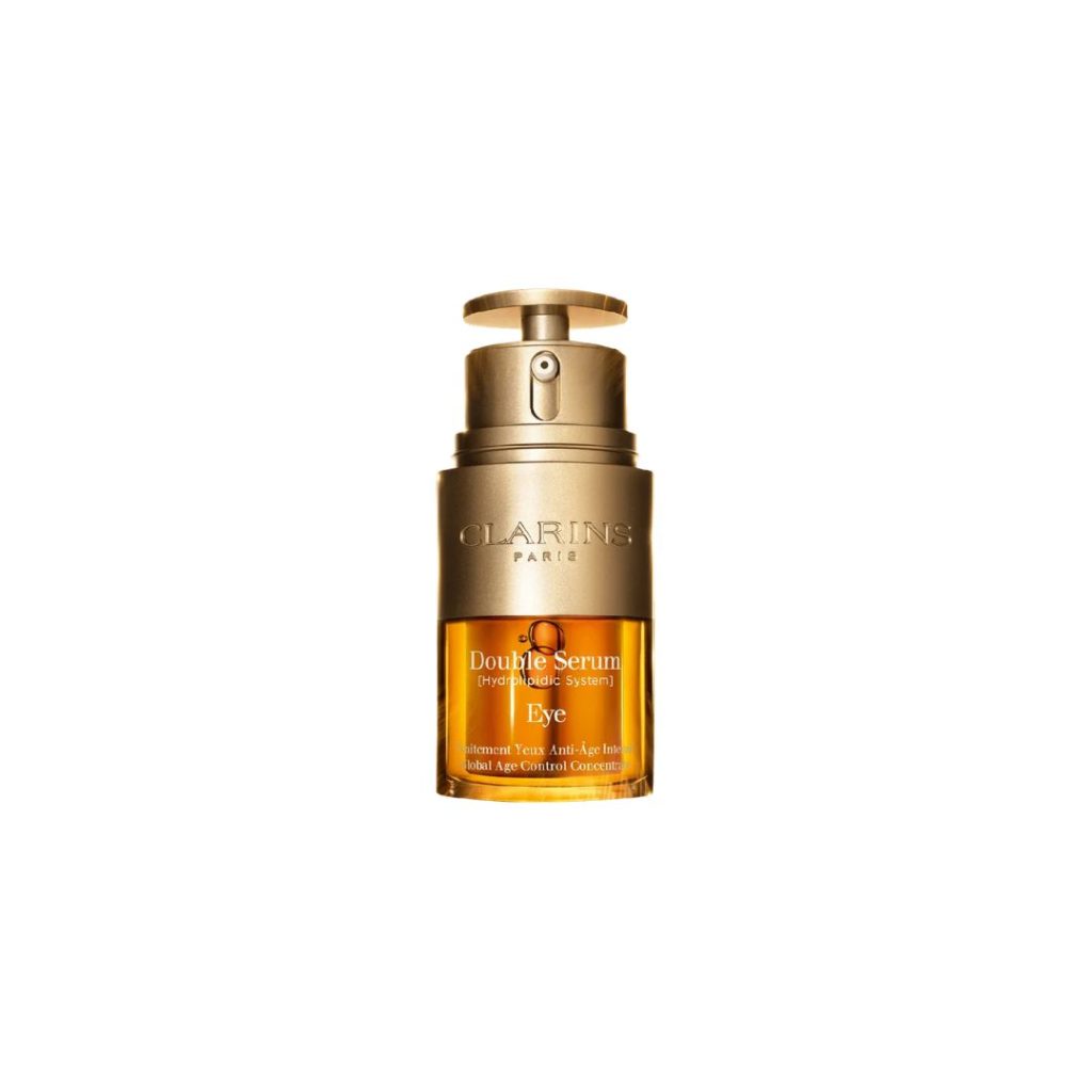 Bazirana na filozofiji kultnog Clarins Double Seruma za lice, ova okoloočna verzija kombinuje dve teksture, gel i emulziju, koje se spajaju neposredno pre nanošenja. U sastavu su kurkuma, ekstrakt albizije, đumbirov ljiljan, kofein, skvalan i brojni biljni ekstrakti koji zajedno rade na zaglađivanju linija, posvetljavanju podočnjaka i vraćanju elastičnosti koži.