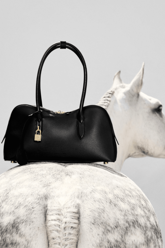 Stella McCartney, pionirka održive i cruelty-free luksuzne mode, kroz ovu kampanju još jednom ističe filozofiju na kojoj je izgradila brend. Ryder torba, izrađena od veganskih alternativa koži po kojima je Stella McCartney globalno poznata, dolazi u teksturama koje podsećaju na brušenu kožu, nojevu i zmijsku, dok je prepoznatljiva mesingana brava zadržana kao fini, funkcionalni detalj.