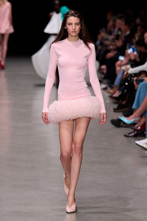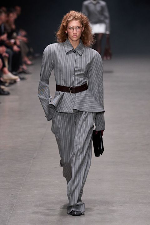 Na pisti su viđena odela sa širokim ramenima – zaštitni znak McCartney estetike – u kombinaciji uz peplum košulje i utility pantalone. Drapirane haljine inspirisane Madame Grès kontrastirale su korsetskima, dok su biodegradabilne šljokice obasjale teksas i pamučne komade. Poseban fokus bio je na teksasu izrađenom od PURETECH materijala koji, kako ističu beleške, „čisti vazduh koji dišemo“. Fevvers, biljna alternativa perju, zatvorila je reviju u upečatljivoj ljubičastoj haljini na manekenki Alex Consani.