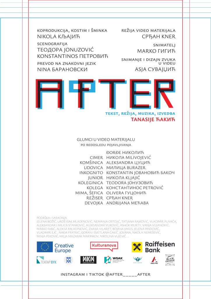 „AFTER АФТЕР“ je jedna od svega četiri predstave iz Srbije koje su na javnom konkursu zadovoljile umetničke, kvalitativne i inkluzivne kriterijume i time dobile finansijsku podršku. Posebna vrednost predstave leži u inkluzivnosti, dostupna je i publici sa oštećenim sluhom, jer se znakovni jezik koristi kao deo scenskog izraza, čineći je dostupnom svima.