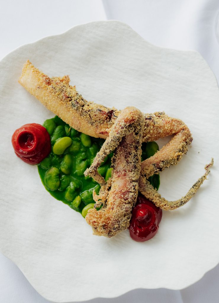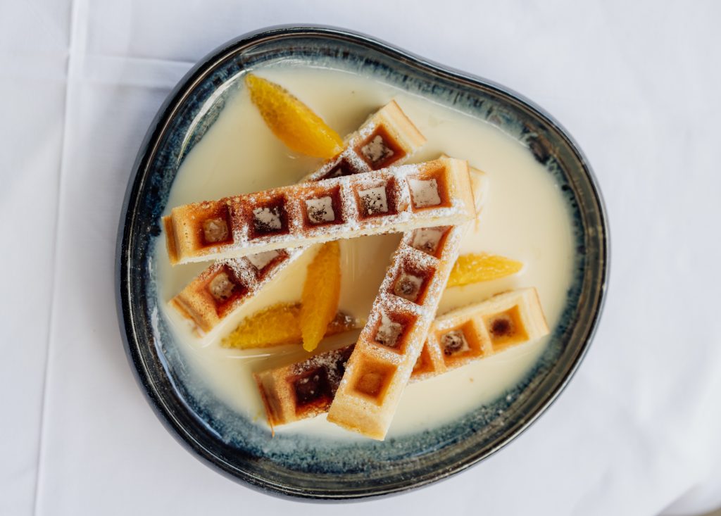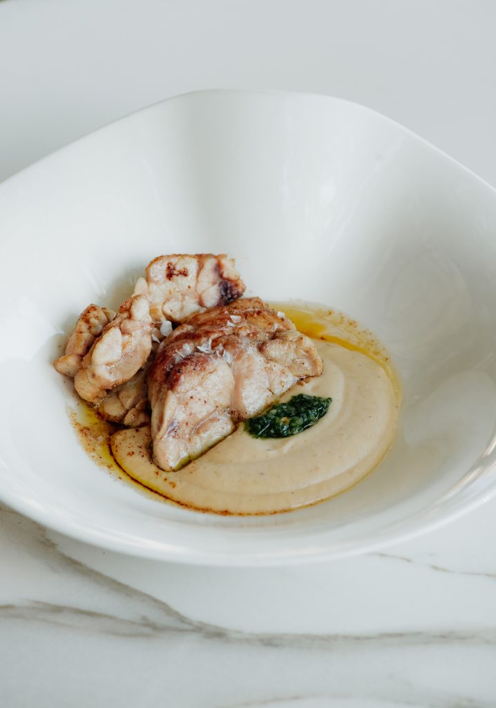 Kuhinja se oslanja na sezonske namirnice, ali ih vodi u neočekivanom pravcu, dok su puter i dim jezik koji sve povezuje.