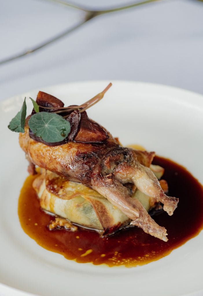 Iako mnogi opisi zvuče rustično, pristup ostaje sofisticiran, čak i kada se govori o brizlama, divljoj svinji, punjenoj prepelici ili svinjskom papku. Brizle su ovde nežne, jaretina elegantno prožeta holandzeom i uljem od lovora, dok se u meniju pojavljuju i presovana teletina, puževi, torchon foie gras, sarmice u listu rena, pa čak i rižoto sa svinjskom butkicom i kiselim kupusom kao potpuno novo čitanje jednog dobro poznatog jela.